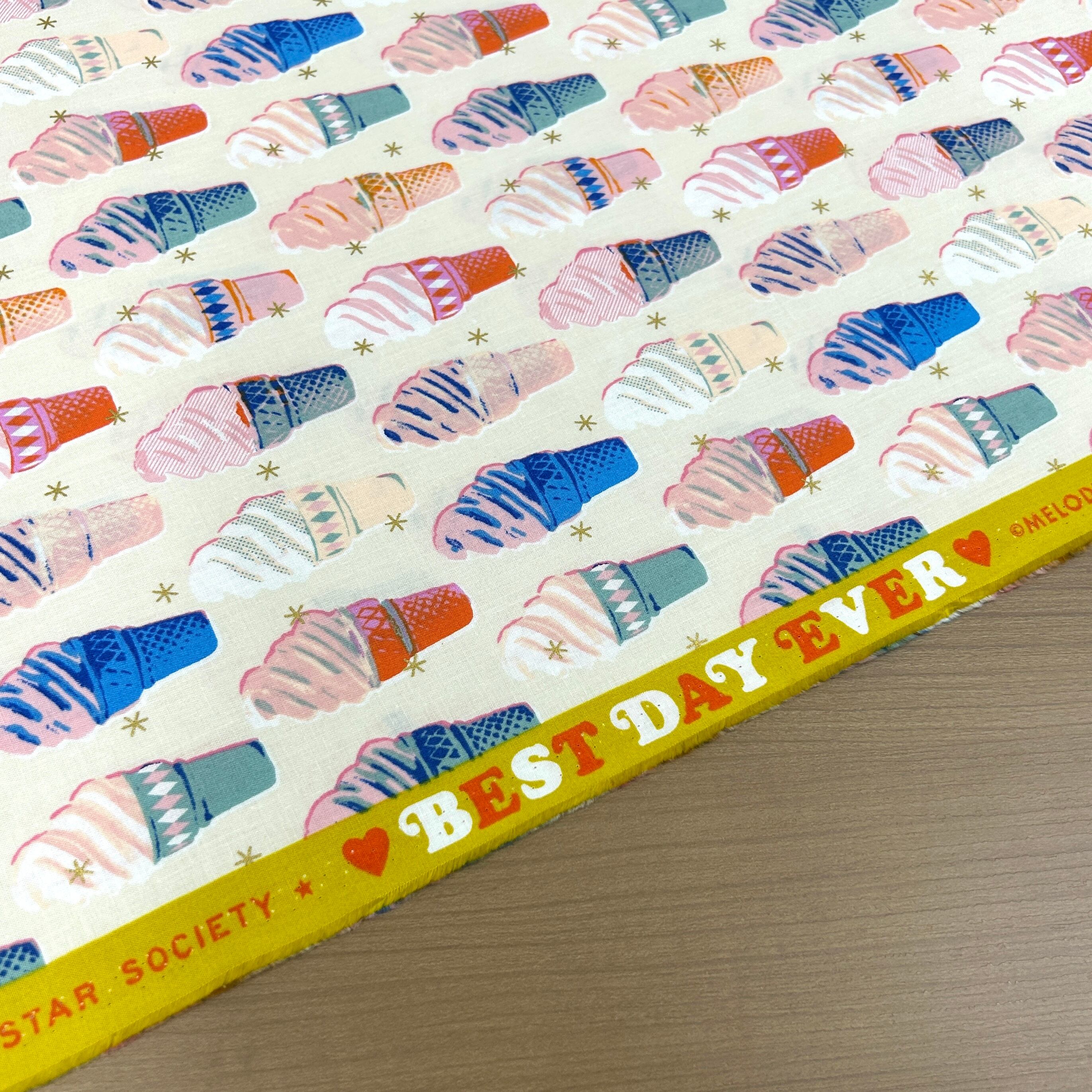 かわいいソフトクリームがデザインされた「ICE CREAM」というプリント生地。