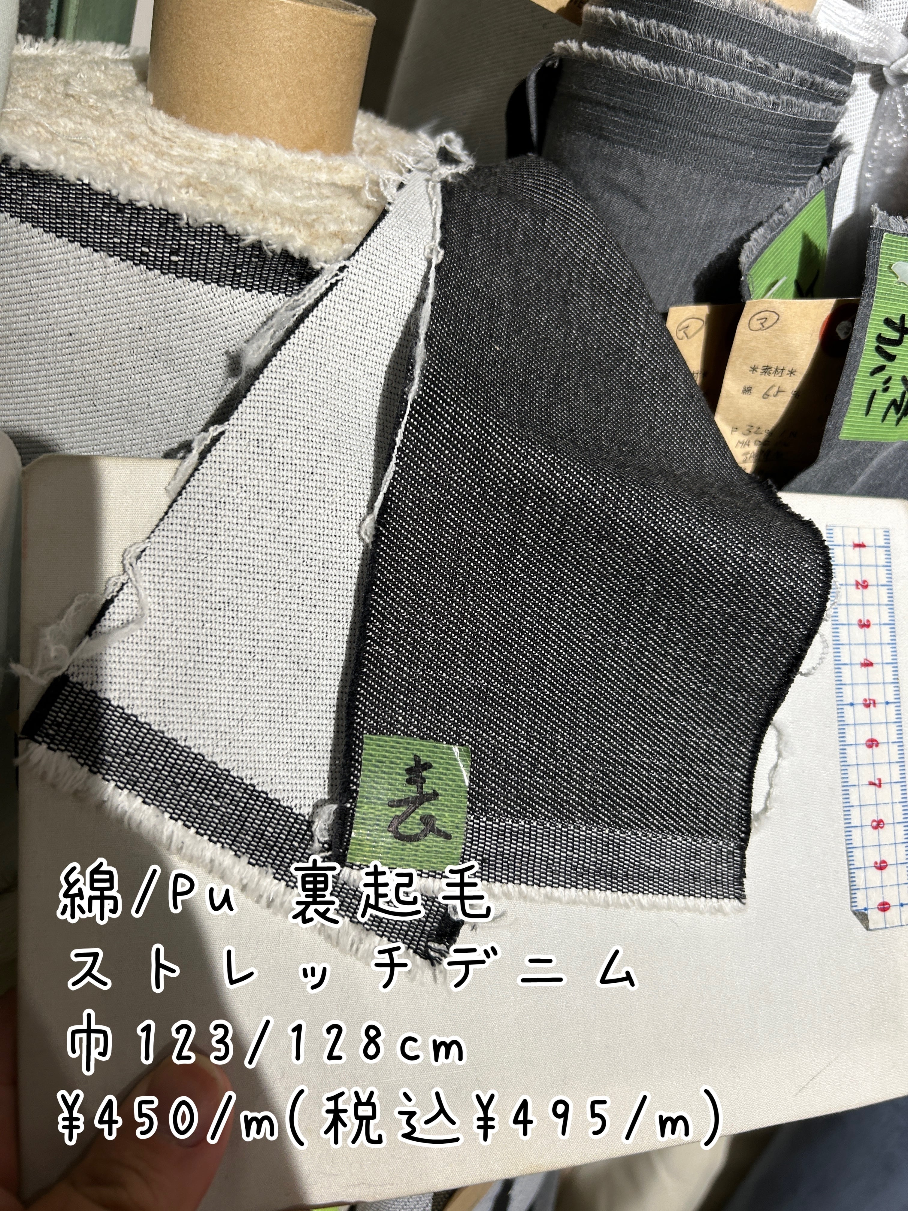 巾123/128cm 綿/Pu 裏起毛ストレッチデニム 5.0m×¥450 =¥2,250