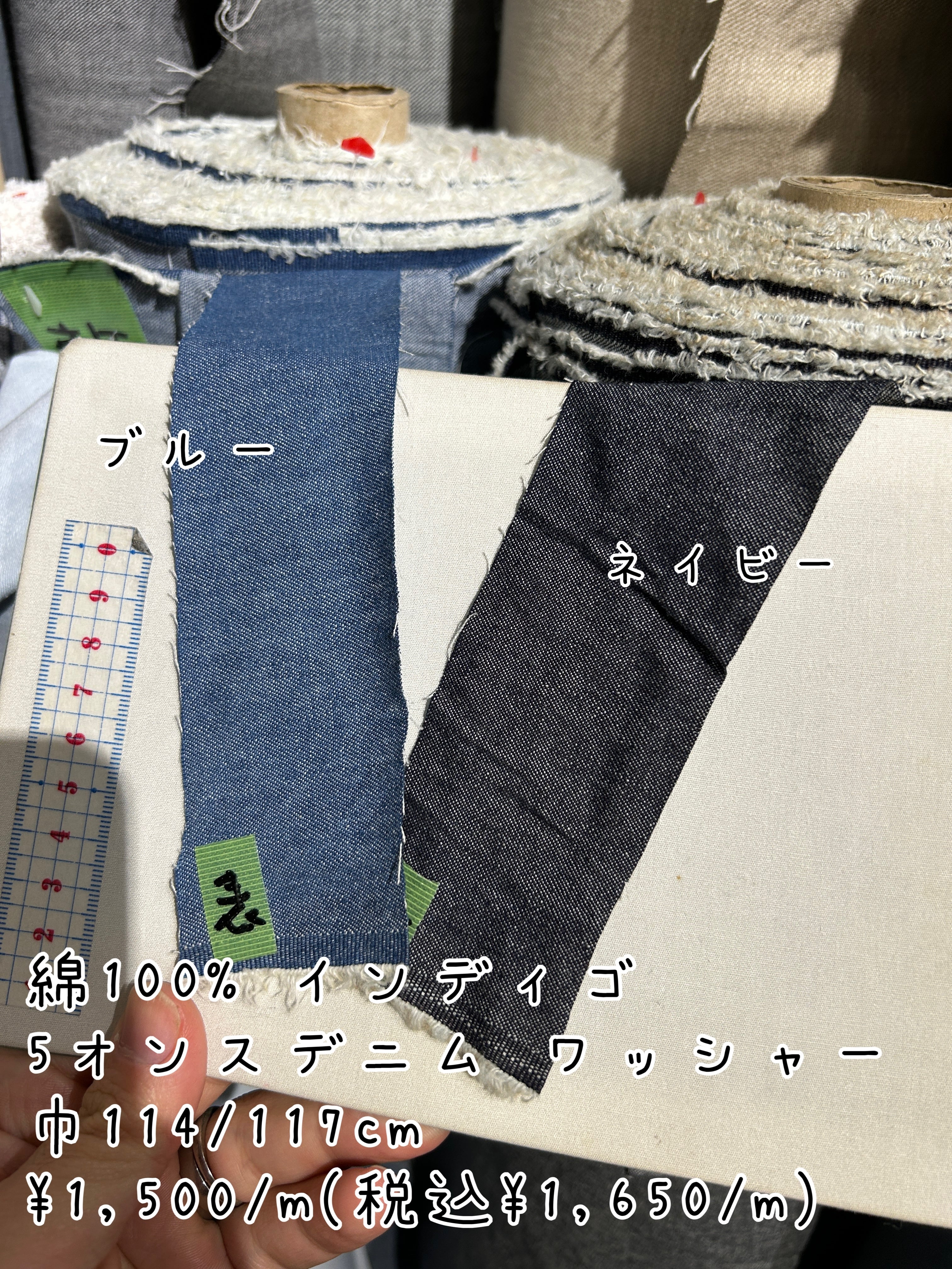 巾114/117cm 綿100% 5オンスデニム ワッシャー ブルー 3.7m×¥1,500 =¥5,550