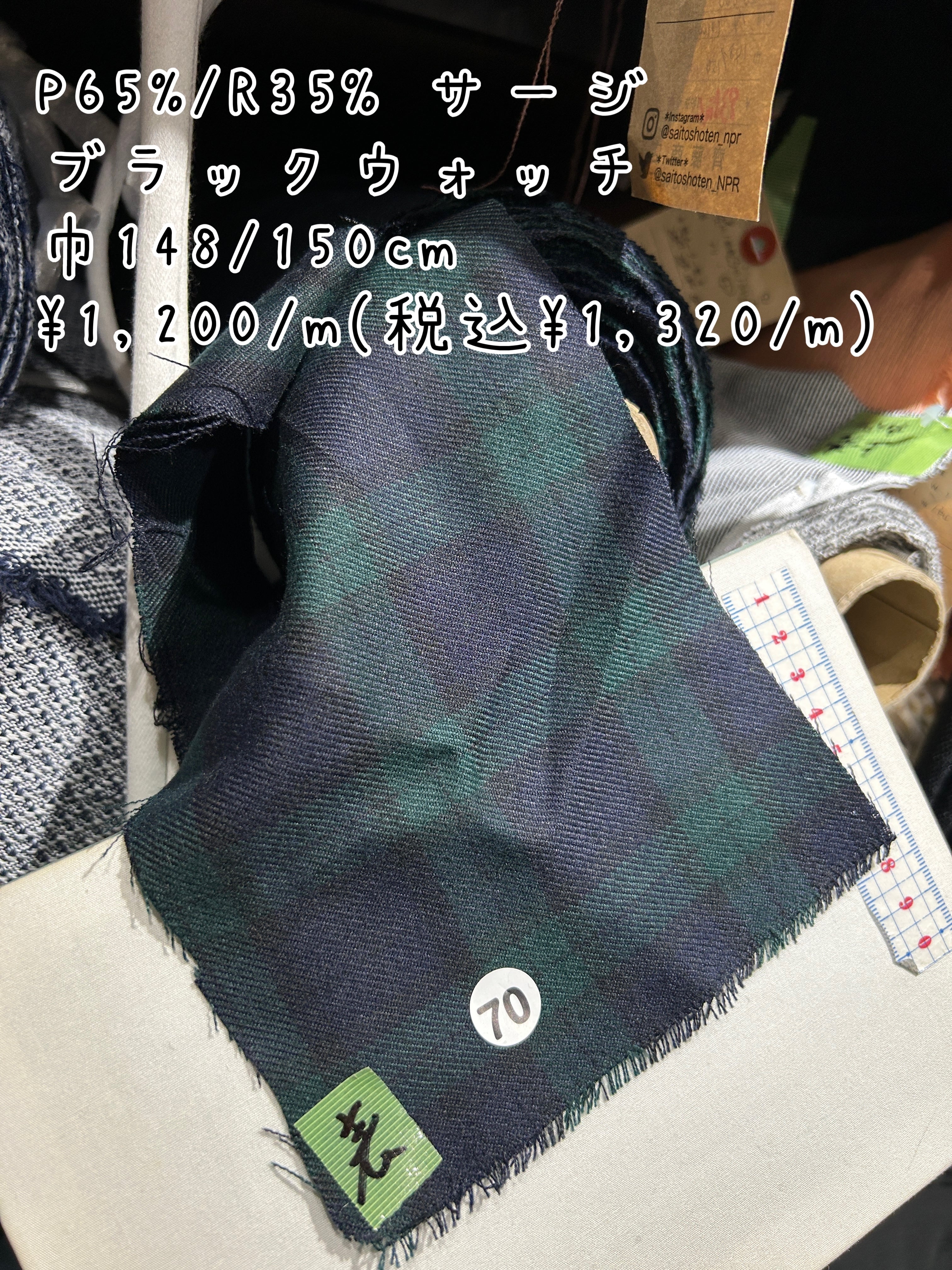 巾148/150cm P65%/R35% ブラックウォッチ 3.0m×¥1,200 =¥3,600
