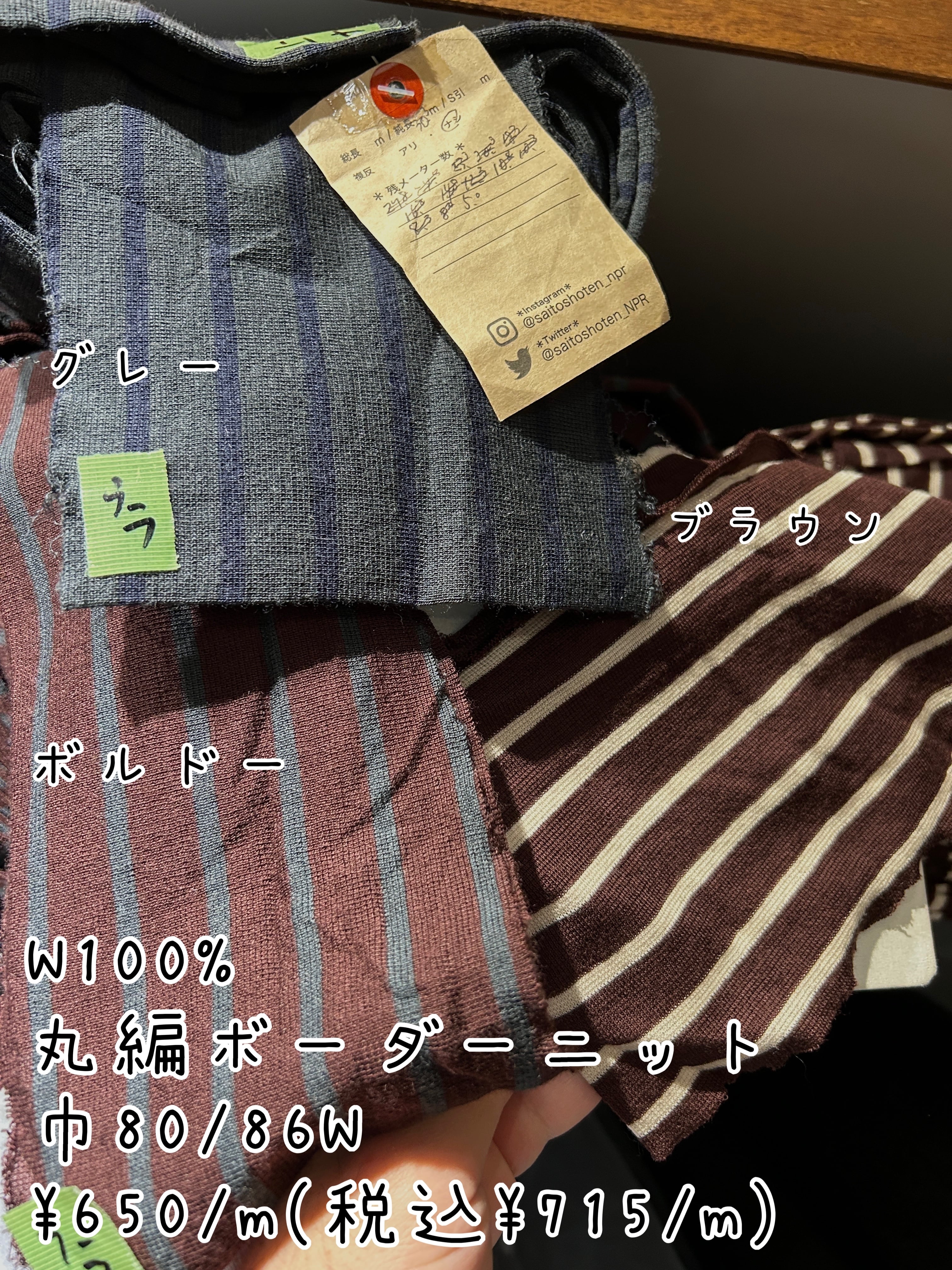 巾80/86cmW W100% 丸編ボーダーニット ボルドー 1.5m×¥650 =¥975