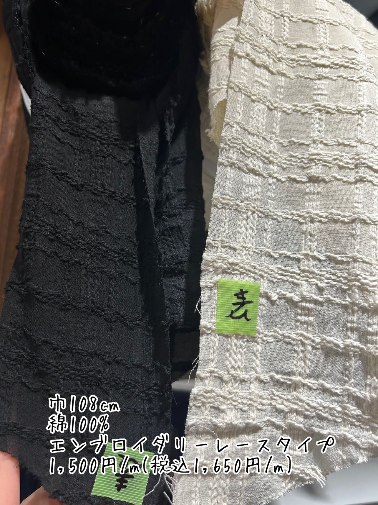 巾108cm 綿100% エンブロイダリーレースタイプ キナリ 2.0m ×¥1,500 =¥3,000