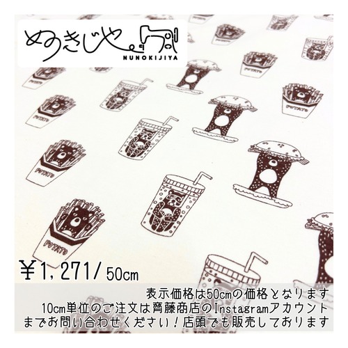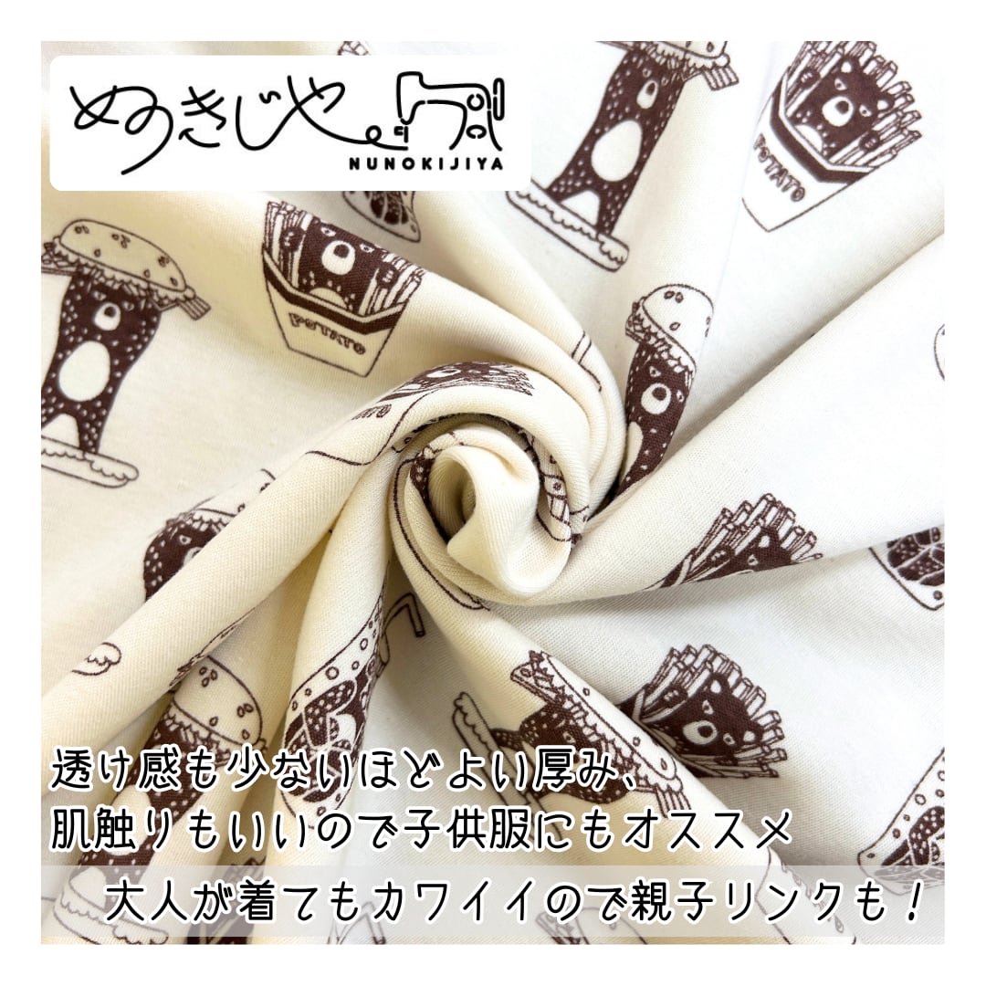 【ぬのきじや】"くまバーガー(Dark Brown)" (綿100% 40スムースニット)