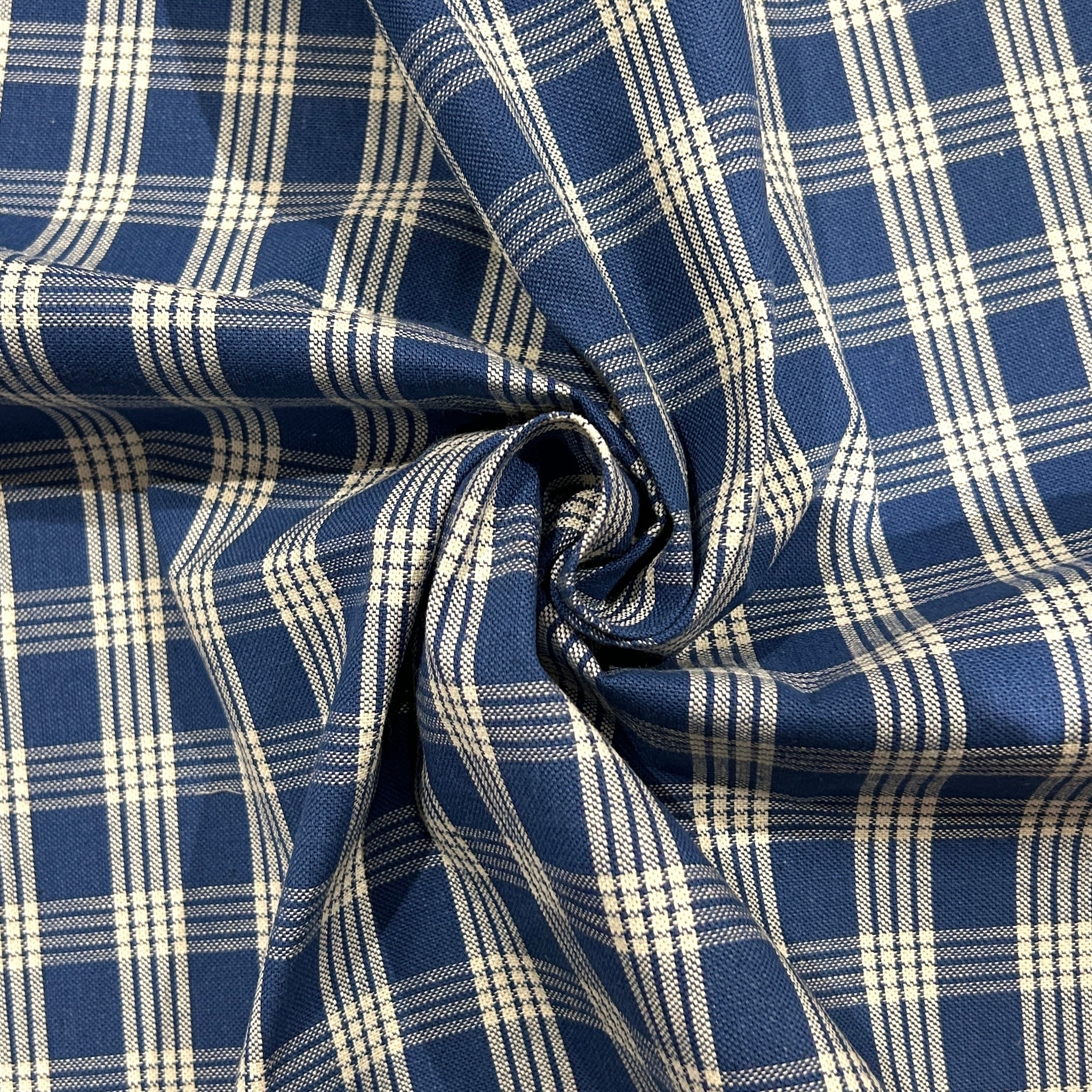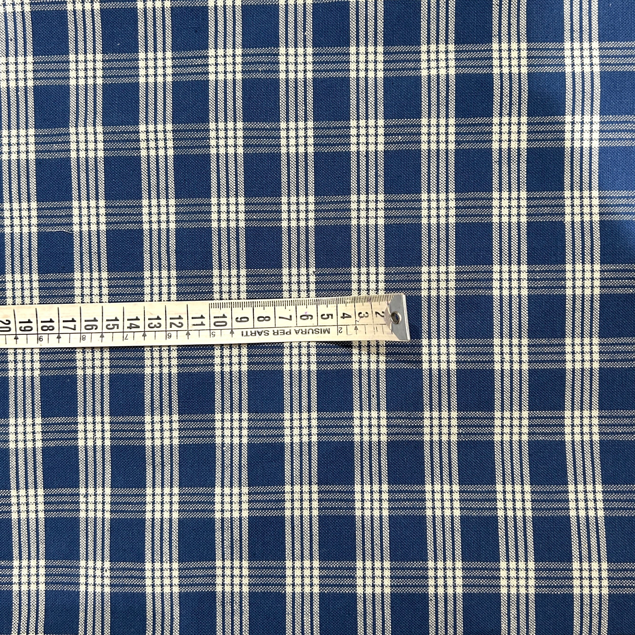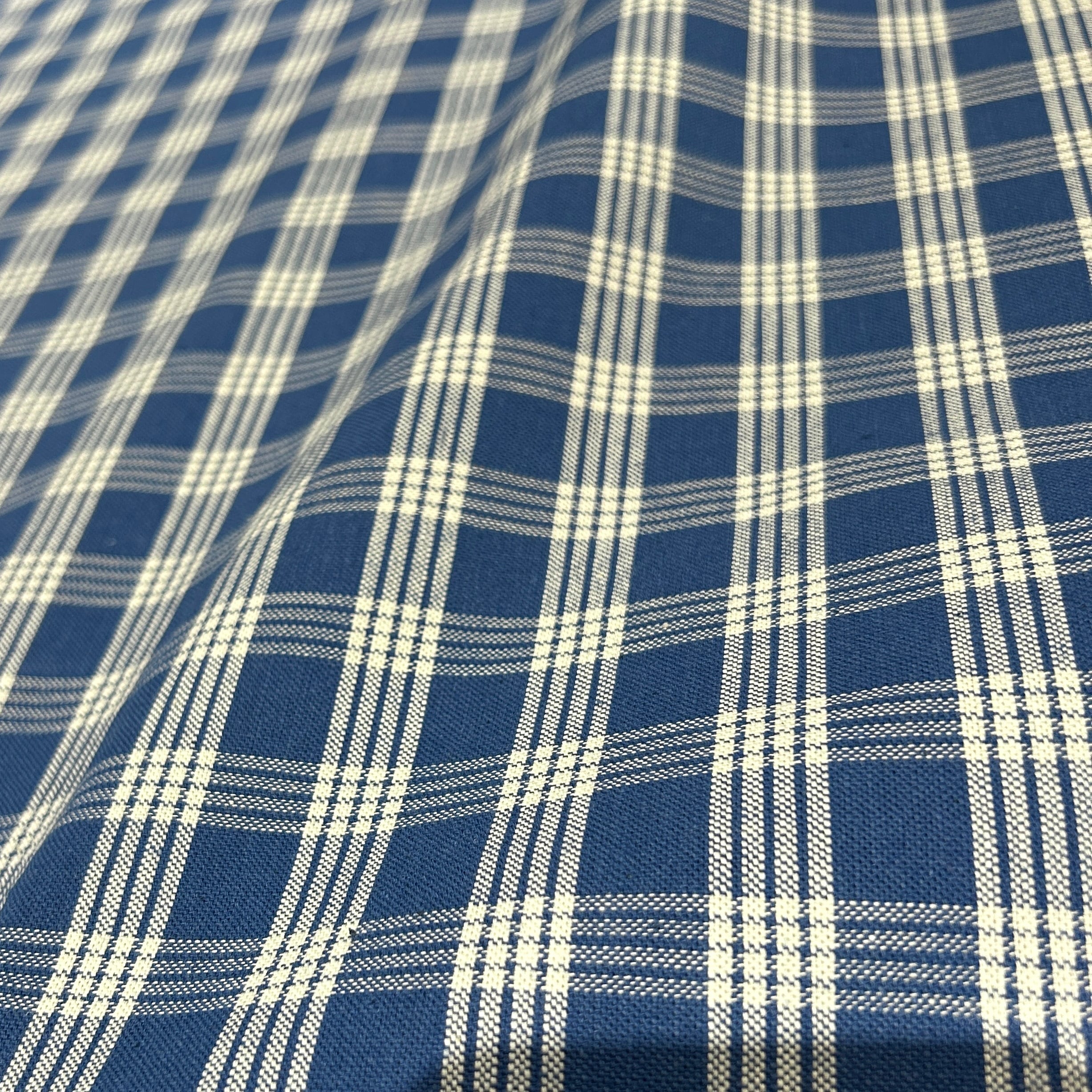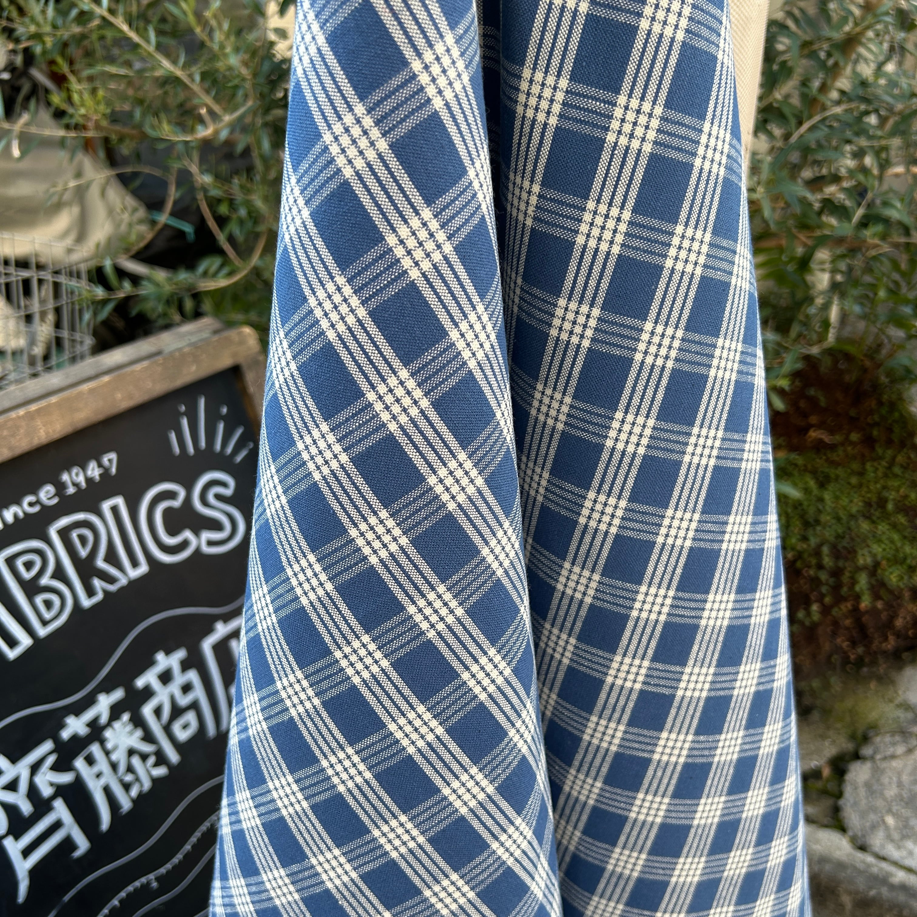 インディゴ染のチェックの帆布生地