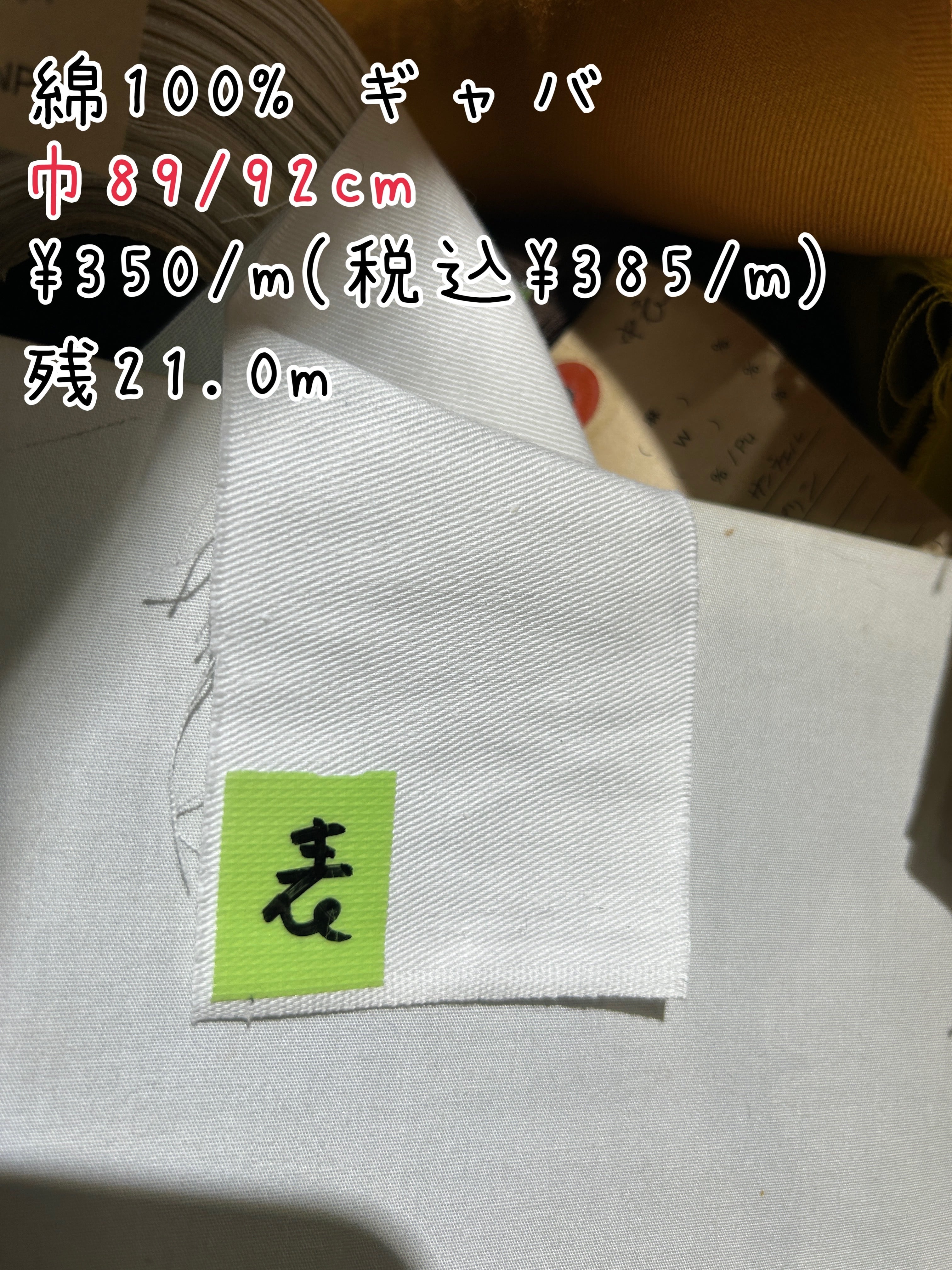 巾89/92cm 綿100% ギャバ 白 2.0m ×¥350 =¥700