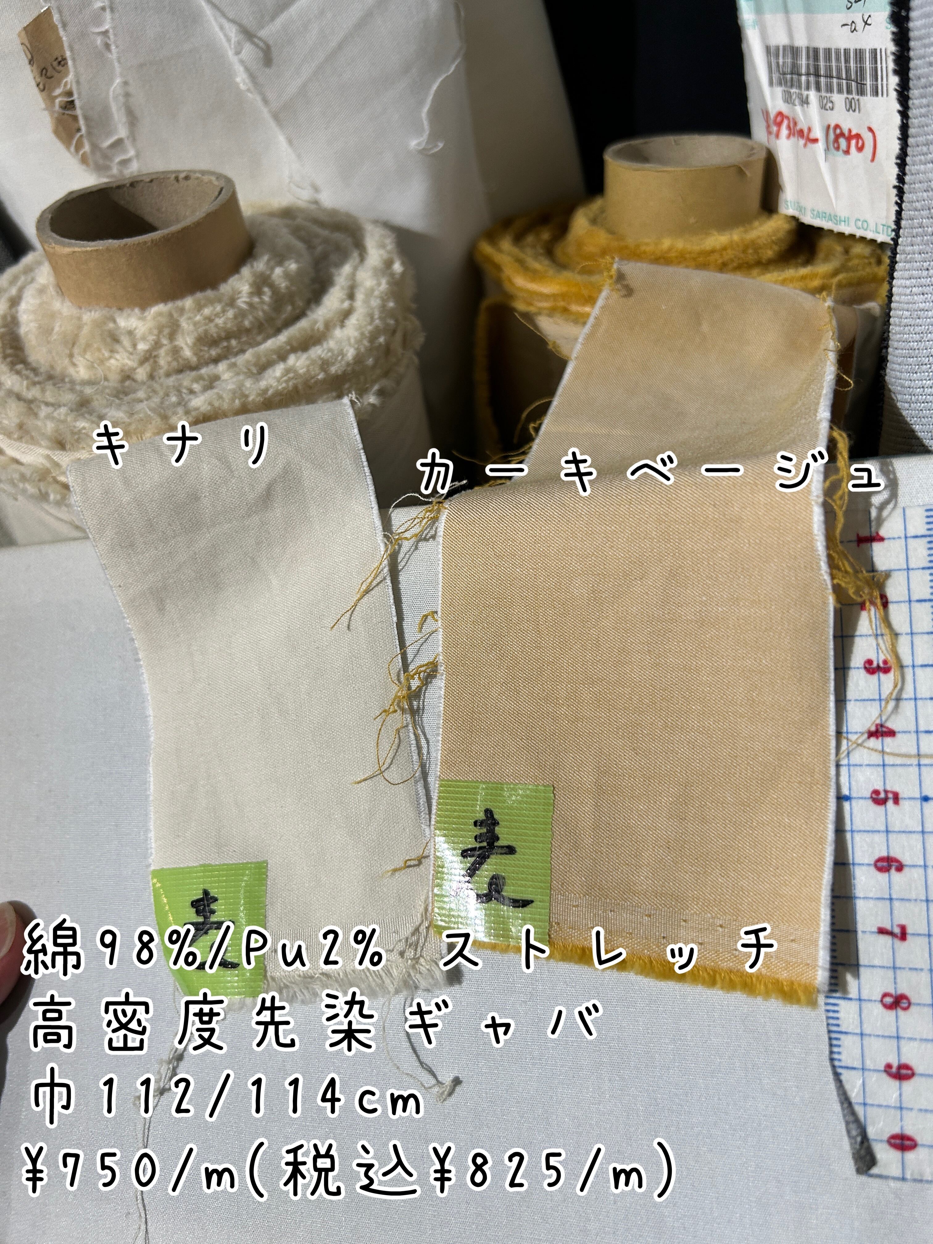 巾112/114cm 綿98%/Pu2% 高密度先染ギャバ カーキベージュ 3.0m ×¥750 =¥2,250